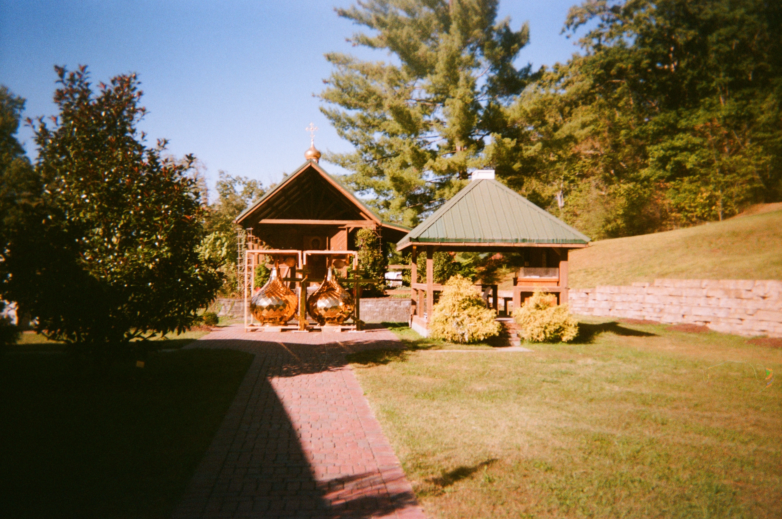 The new domes (prior to installation) next to a couple of shrines